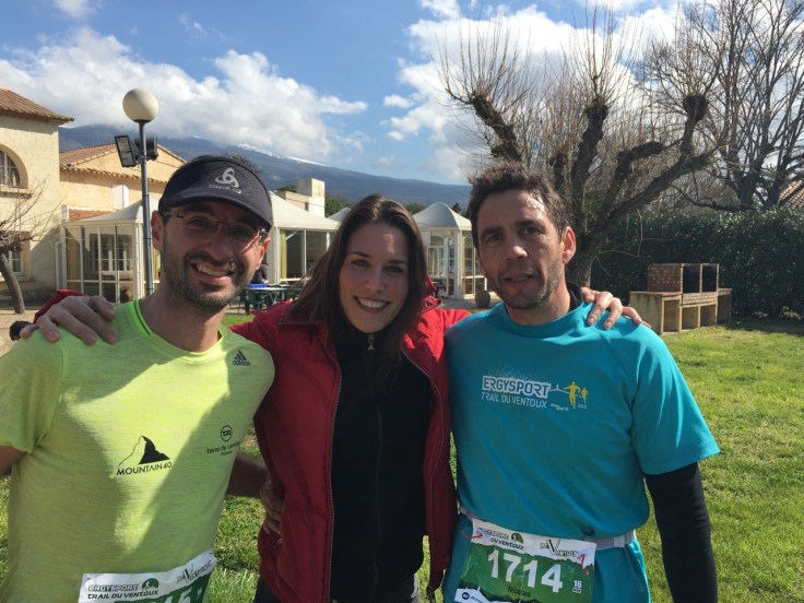 Courant novembre, au cours d’une session avec Foul&es Paris 12, Alex me parle du trail préféré de sa région : celui du Mont Ventoux. Il me le vend si bien que le soir même, je m’inscris sur la distance reine avec au passage un aller retour au sommet. Le dossard est abordable : 25 €, loin des dérives tarifaires de certaines courses parisiennes. Les 1000 dossards partent souvent en 1 semaine. Lorsque j’entends parler du Mont Ventoux, je pense d’abord au Tour de France et les fameux lacets qui amènent régulièrement le peloton sur le sommet lunaire. Le géant de Provence est situé à 1911 mètres d’altitude : les plus grands champions cyclistes ont gravi ses pentes, un certain Tom Simpson y laissa même sa vie. Après ma tendinite qui s’est déclenchée début février, ma participation est compromise. Je garde espoir, accélère les séances de kiné, respecte le repos forcé de 4 semaines et mes exercices avec notamment le protocole de stanish. Je recommence à courir 2 semaines avant la course, cela semble trop juste pour s’aligner sur le 46km avec plus de 2500m de D+. Je décide de me replier sur le 16km, déjà plus raisonnable et accessible. Départ avec Ouigo depuis Marne-la-Vallée vendredi midi. Après une promenade dans la cité des papes, je rejoins Renaud sur le quai de la gare pour se rendre à Cavaillon. Alex nous récupère à la gare. Direction Oppède-le-vieux, magnifique village provençal perché au milieu du Luberon. Fabien et la petite Célestine nous accueillent.