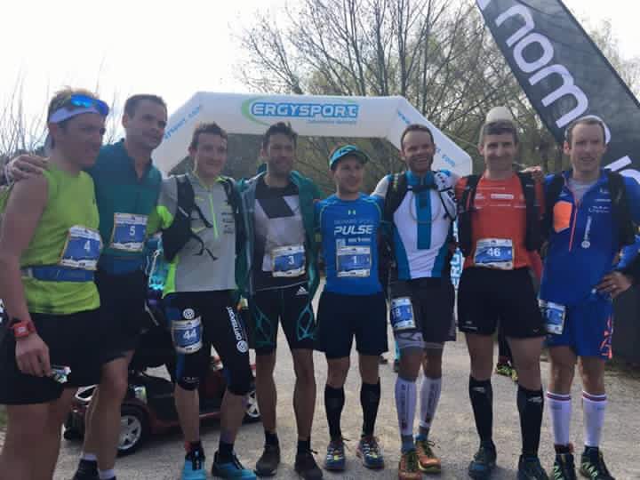 Départ pour le 46km à 8h, Fabien et Jérémy sont au taquet. Je me positionne sur la ligne de départ : il y a du niveau avec notamment Sylvain Court : champion du monde de Trail en 2015, Xavier Thevenard : vainqueur de la CCC/TDS/UTMB et Nicolas Martin : vainqueur de la saintelyon.