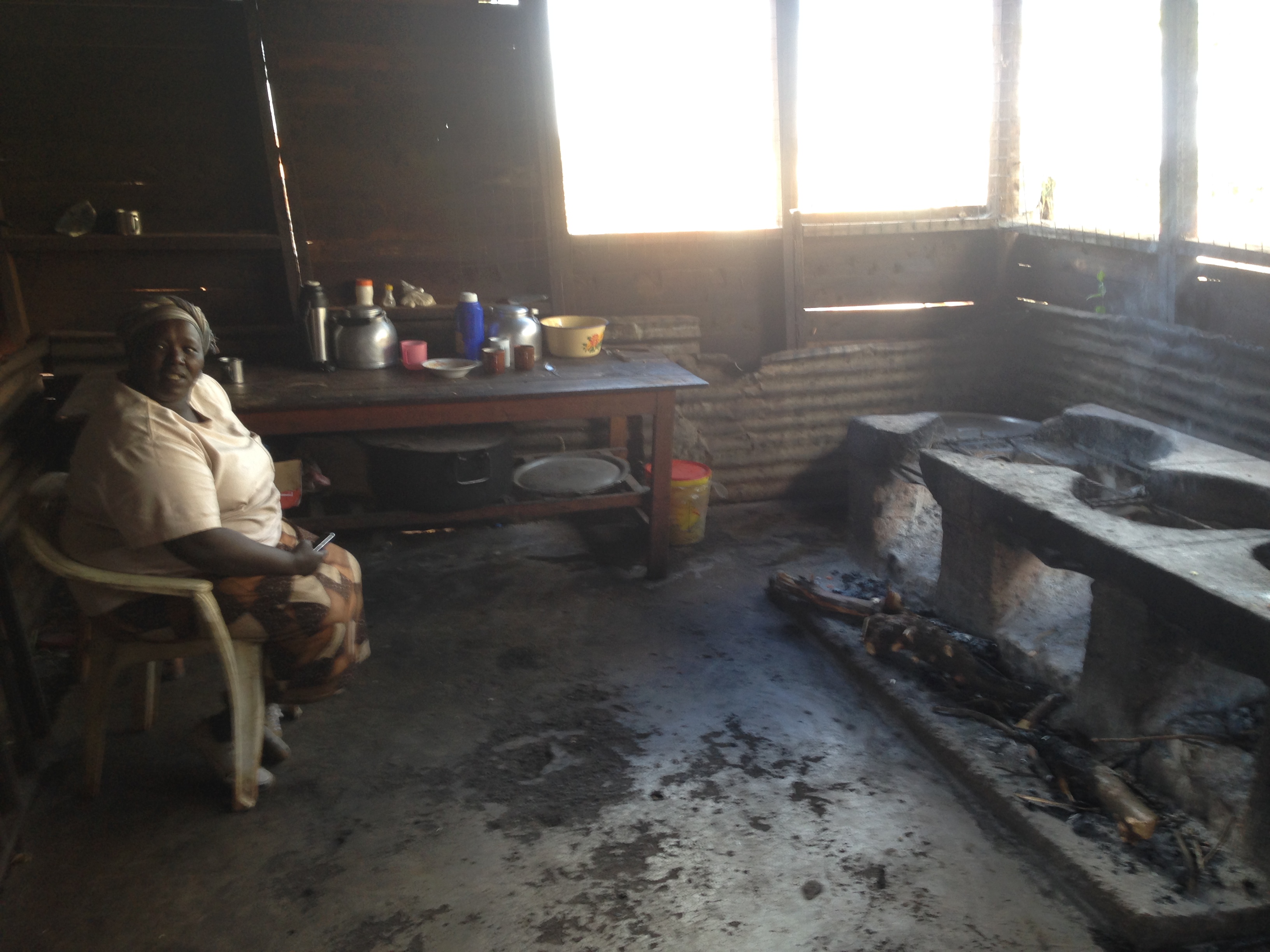 Nous visitons quelques salles de classes. La majorité ont été rénovées l’été dernier lors de la venue de Nathalie par l’intermédiaire de l’association Fungana. Elles ont été peintes et les sols ne sont plus en terre battue. John et Craig sont fiers de nous montrer également 2 grandes citernes qui permettent de stocker l’eau. L’école compte 353 garçons et 383 filles pour un total de 8 classes. En faisant rapidement le calcul, le ratio d’élèves par classes est légèrement supérieur au standard de l’éducation nationale. On interrompt timidement quelques classes pour se présenter. Tout d’abord en classe de mathématique, en sciences ou en anglais. L’équipe de l’école est composée de 28 personnes. Ici, l’enseignement est effectué dans 3 langues : l’anglais – le swahili et le Kalenjin. Les classes sont mixtes du lundi au vendredi de 8h20 à 15h30 avec 2 pauses et le déjeuner. La visite est vraiment différente de ce matin. Sur la fin, on visite la cuisine. C’est vraiment impressionnant, la salle est minuscule et composée d’un four alimenté par le bois ou il règne une chaleur étouffante. Craig nous présente Lydia, qui s’occupe du repas des élèves. J’ai vraiment du mal à m’imaginer comment elle peut réaliser un repas pour autant d’élèves dans ces conditions. Elle me propose de venir manger avec eux. J’accepte avec plaisir de venir manger l’ugali, plat national que j’avais goûté en Tanzanie. Ce sera très certainement jeudi midi car demain le safari est au programme.