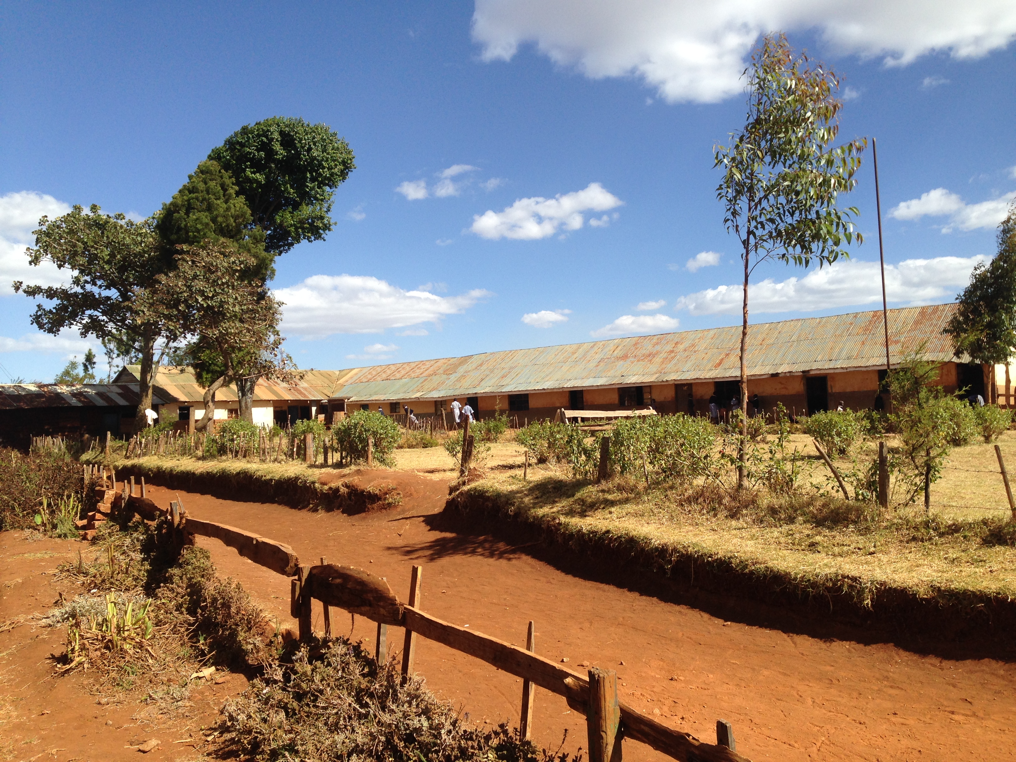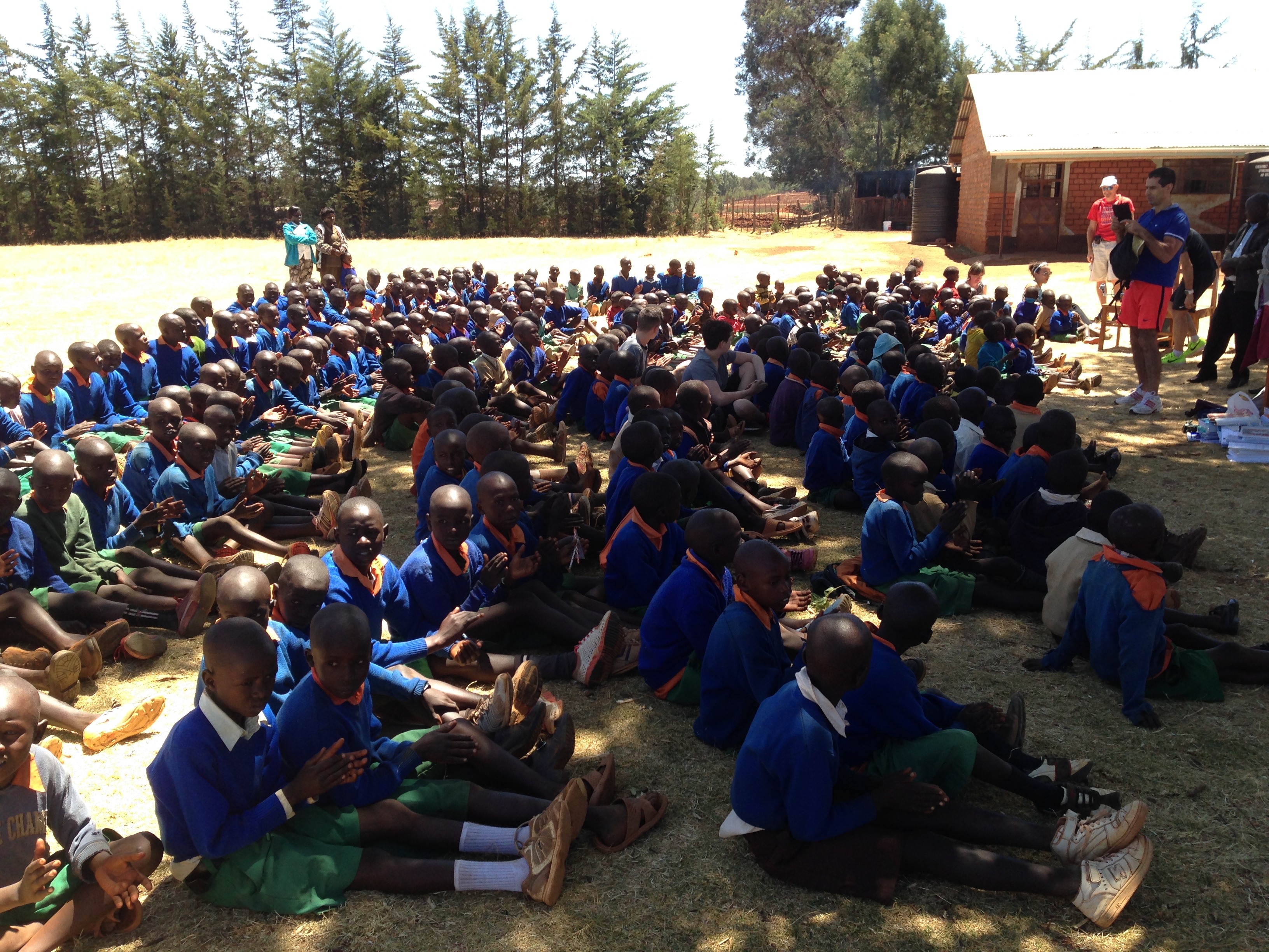 J’ai ensuite rendez-vous à 15h avec Craig à la Iten Primary School. Je suis en contact avec lui depuis quelques semaines et avions réussi à se fixer un rendez-vous. Je propose à Jérôme, mon compagnon de chambre, de m’accompagner. Cela tombait bien, il a raté la visite de ce matin car il s’est fait masser par Hilary, le masseur de Bob. J’ai un sac de 19 kg de vêtements pour les enfants. Craig envoie donc une voiture nous chercher à l’hôtel. L’école est a environ 2 kilomètres. Sur le modèle anglais, les écoliers portent l’uniforme. Les couleurs sont en fonction de l’établissement, ici c’est le bleu marine et le blanc.