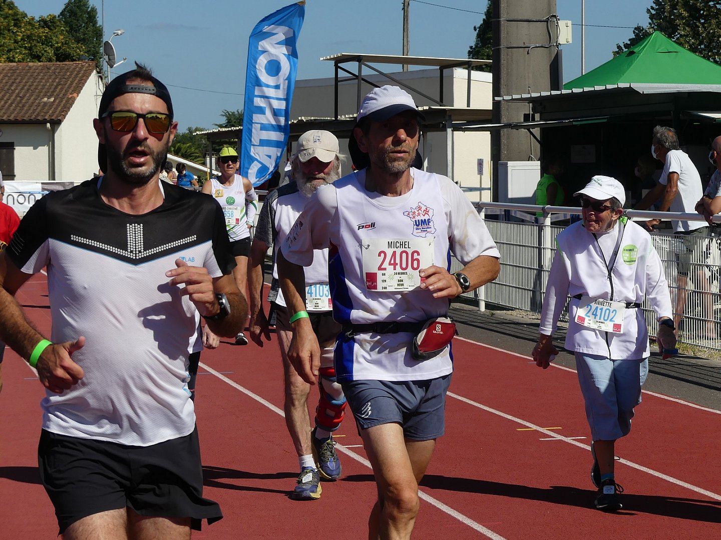 Le reveil dans la nuit va piquer mais passera bien avec le privilège de voir les premiers rayons du soleil. L’athmosphère dans le stade est très particuliere surtout pour les concurrents inscrits sur le 24h. Psychologiquement, ils ont passé la nuit. Les températures sont descendues mais restent très correctes. La fouléee est lourde pour certains, d’autres commencent à boiter ou pencher. L’organisme doit prendre cher au passage.
