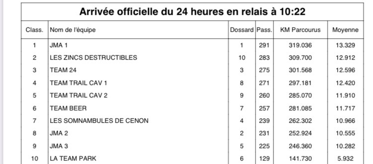 Inscription à 26 euros par personnes pour le 24h en relais.