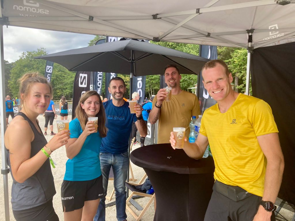 Je retrouve la Team Salomon devant le stand situé juste devant la ligne de départ et d’arrivée.