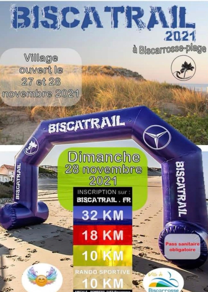 28 novembre 2021 : Biscatrail à Biscarosse (40) – 18km – 1h47m56s – 133eme sur 663 participants.