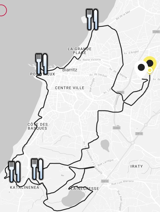 Le parcours a l’air super sympa avec une seule boucle, départ et arrivée depuis le stade Aguilera du Biarritz Olympique, et des passages le long de la côte Atlantique. Par contre, le dénivelé sera au rendez-vous à la vue du profil.