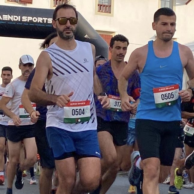Départ de la course à 19h30, les températures ont un peu baissé mais on dépasse largement les 30 degrés au départ. On arrive au retrait des dossards vers 18h45, il n’y a pas grand monde, on repart avec une casquette.