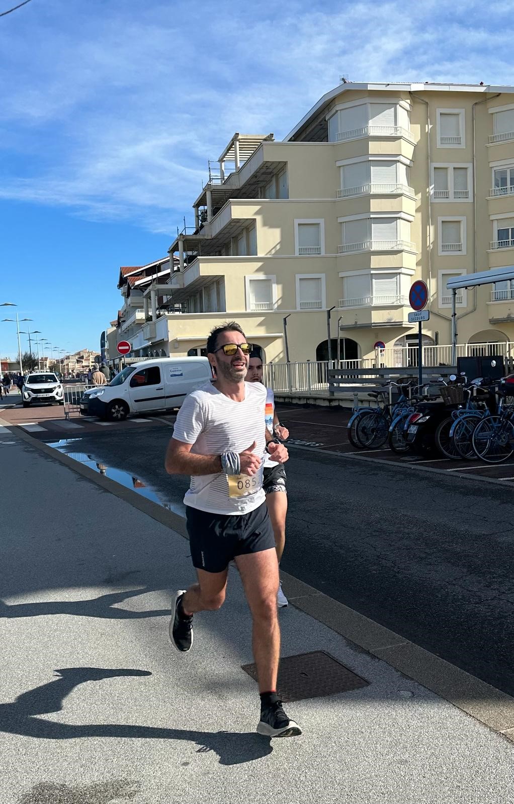 Je récupère très rapidement mon dossard, numéro 0852. Je pars ensuite m’échauffer quelques minutes en bord de mer pour repérer le premier kilomètre.