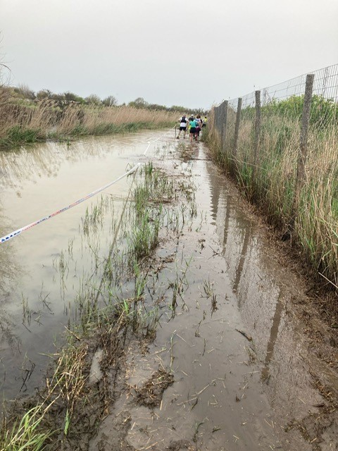Mickael a moins l’habitude de courir et prend sans doute le relais le plus accidenté avec des passages dans les marécages et sur la plage. L’attente est longue au ravitaillement sans indication précise sur son avancement. En effet, le live se base sur l’avancement des précédents relayeurs et n’est pas en temps réel, il faut donc se tenir prêt sur le passage du relais Après 3h15m de course et plus de 2h d’attente au relais, il me passe le témoin.