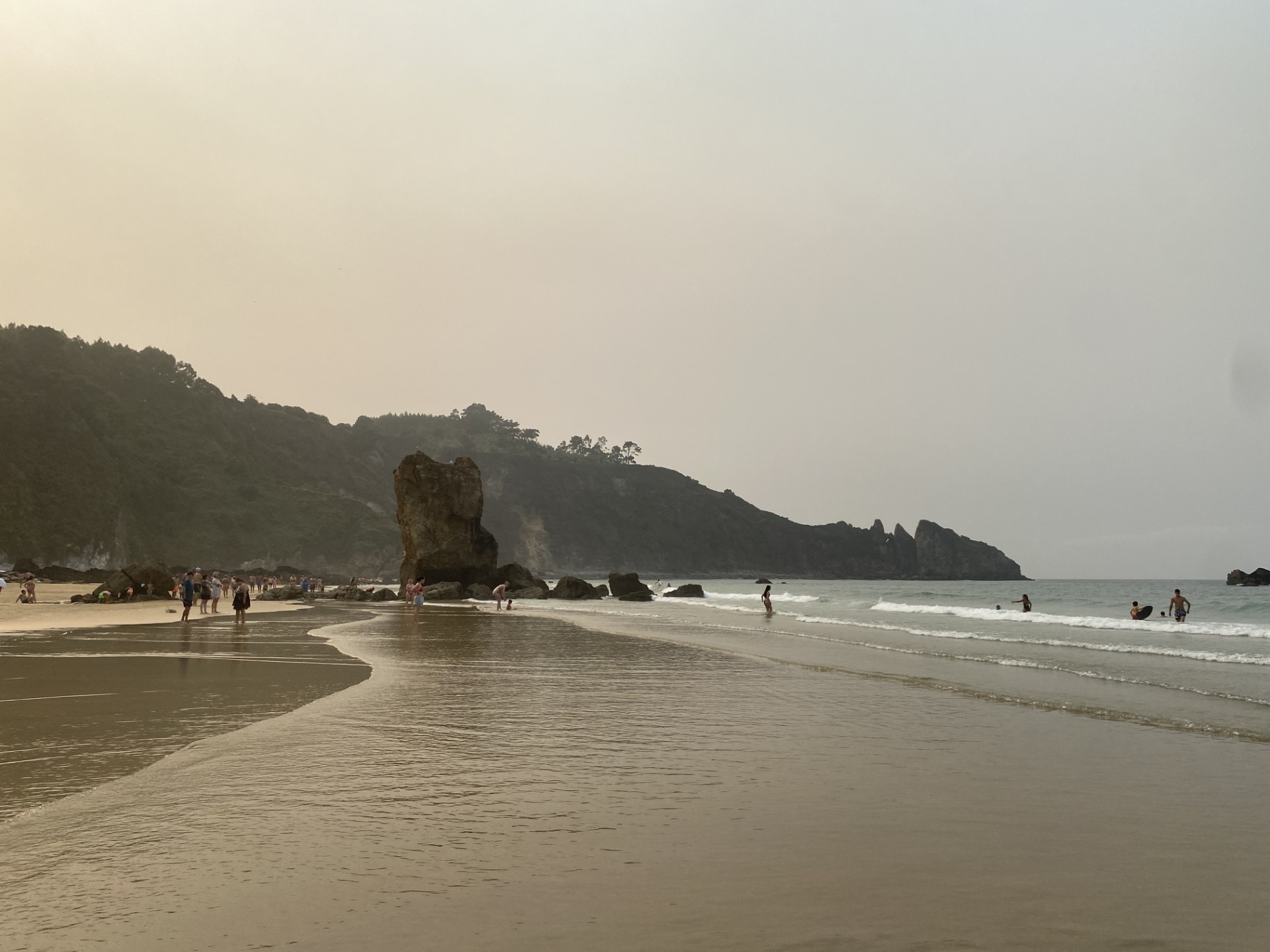 A proximité de Cudillero, c’est une plage de sable fin idéale avec des enfants. Elle est entourée de falaises et de forêts, avec des rochers sculptés qui semblent sortir du sable comme des silhouettes avec l’emblématique, Peña del Caballar, une statue naturelle au centre de la plage.
